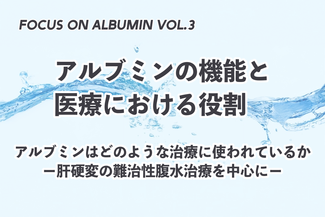 医療現場においては、出血性ショック、熱傷、低アルブミン血症を伴う病態など、多くの臨床状況において、アルブミン製剤が重要な役割を担っている。重症の低アルブミン血症は、循環動態の不安定化、栄養状態の悪化、感染リスクの増加、術後合併症の増加をもたらすため¹⁾²⁾、その適切な管理は臨床医にとって重要な課題である。