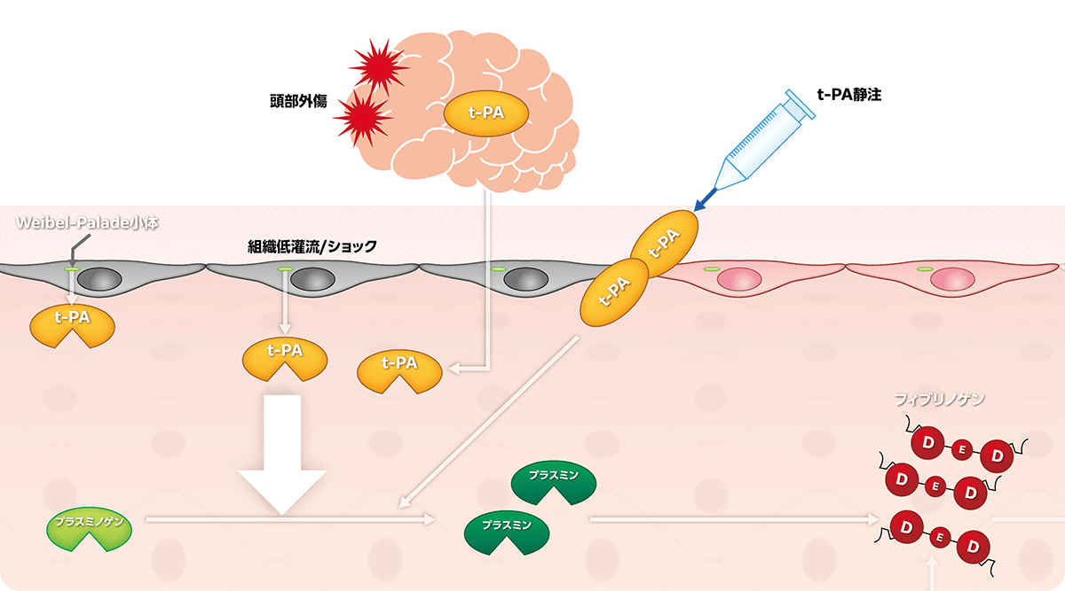 - 脳組織などt-PAに富む組織の損傷。
