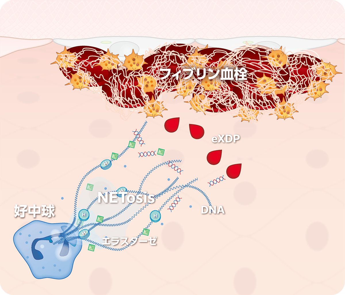 好中球エラスターゼがプラスミンの関与なしでフィブリンを分解します。